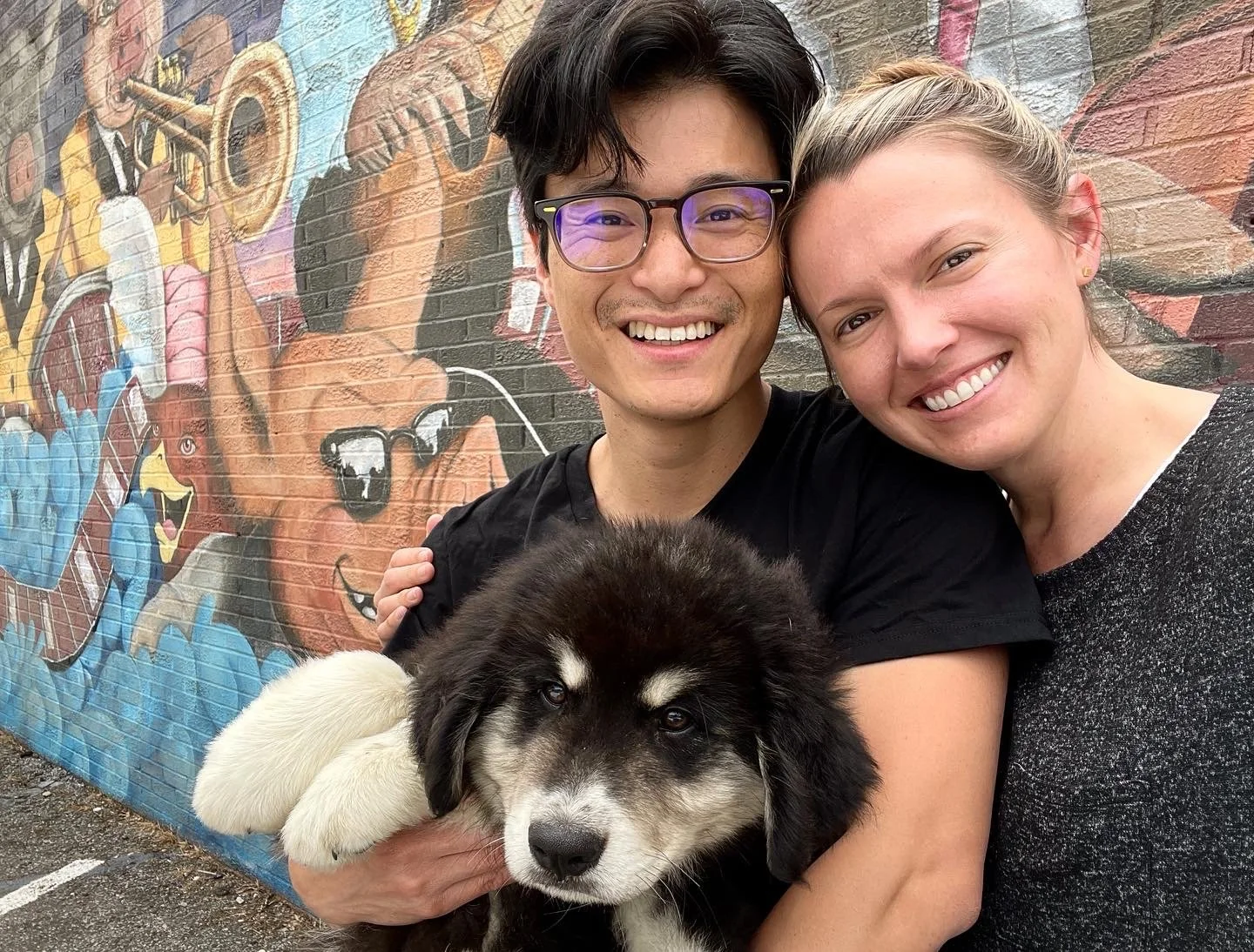 because at this moment, we both agree he is the best decision we ever made. After sitting on a waiting list for thirteen long months, in March 2022 we got the call that a black Great Pyrenees boy was born on a farm outside Asheville, North Carolina and we booked a flight. The first lesson we learned on this adventure was that we would never fly Frontier again. The next lesson we learned was how to make mistakes together and help each other laugh about it afterward. There were a lot of puppy accidents on the drive from Asheville to San Francisco. We hope to be parents one day and bring a child home to meet this ball of fluff. For now, he completes our family and joins our beach adventures and road trips.